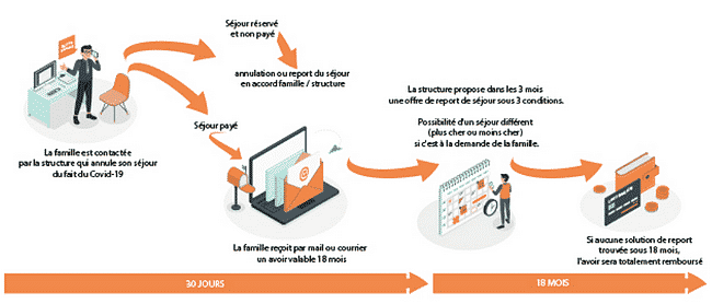 Les séjours VACAF, comme les autres vacances prévues pendant le confinement, ont été annulés. Si vous aviez réservé et payé un séjour supprimé, le centre de vacances vous proposera :
