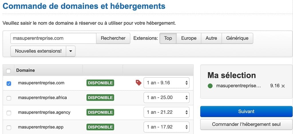 Après avoir retenu votre domaine, sélectionnez l’offre adaptée :