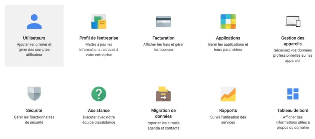 Pour ajouter d’autres adresses, direction la console d’administration Gsuite : création de comptes, gestion des paiements et paramétrage complet y sont accessibles.
