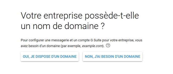 Choisissez ensuite votre nom de domaine. Si vous en avez déjà un, sélectionnez l’option correspondante ; sinon, Google vous permettra d’en enregistrer un nouveau (à partir de 12 euros par mois).