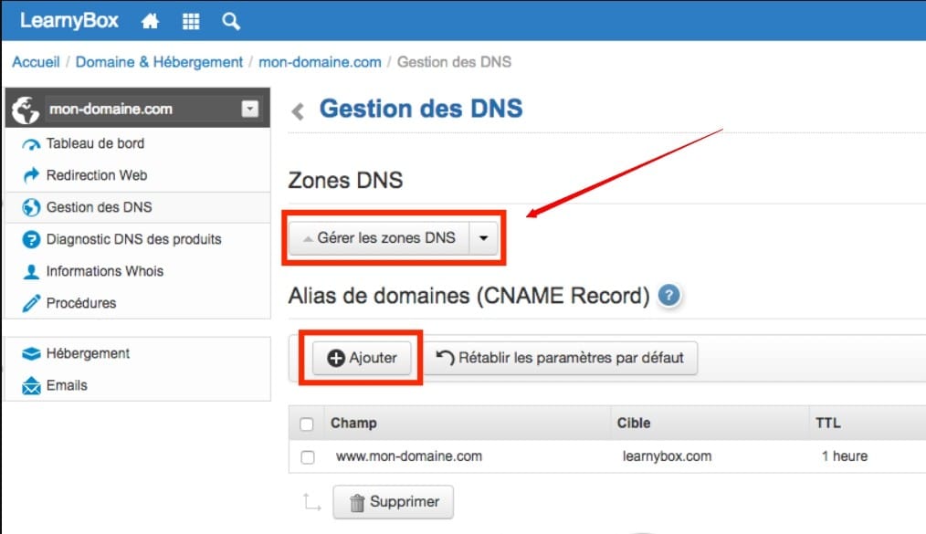 Voici comment procéder sur votre interface DNS :