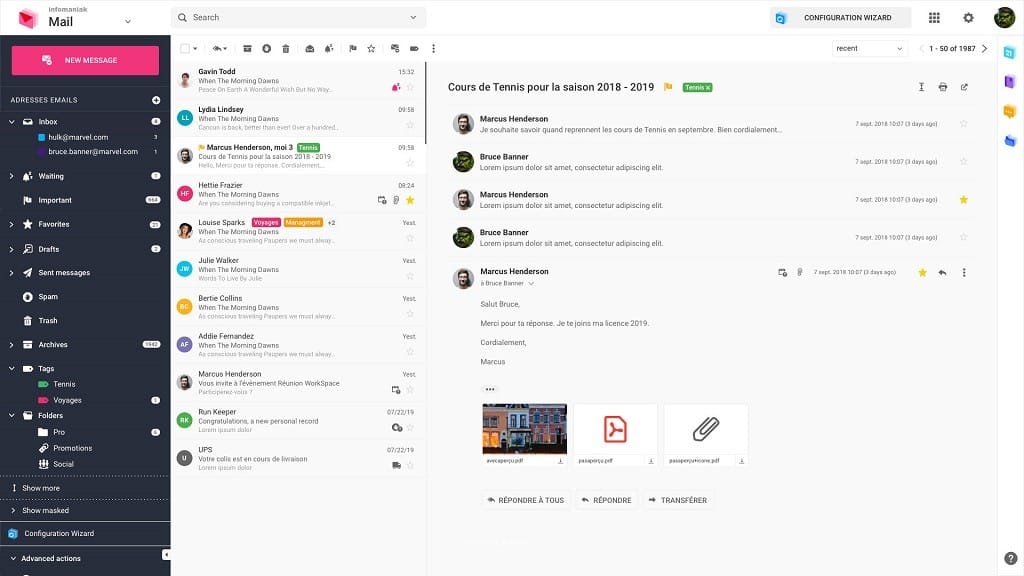 - Gestion multi-comptes et dossiers personnalisables à l’infini.