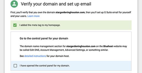 Pensez à enregistrer les modifications. Retournez ensuite sur Gsuite pour cocher la case confirmant l’ajout de la balise meta.