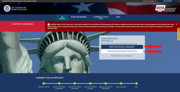 1, Connectez-vous sur le site officiel : https://esta.cbp.dhs.gov