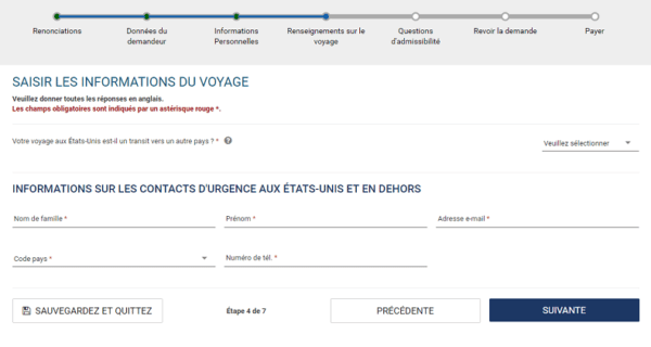 Vous devrez indiquer un contact aux États-Unis. Si vous ne connaissez personne sur place, inscrivez le nom de votre hôtel ou du propriétaire de votre hébergement. Il existe une case « INCONNU », mais mieux vaut l’éviter : à la douane, un agent pourrait vouloir des précisions. L’adresse précise aux États-Unis n’est pas toujours demandée lors de chaque voyage.