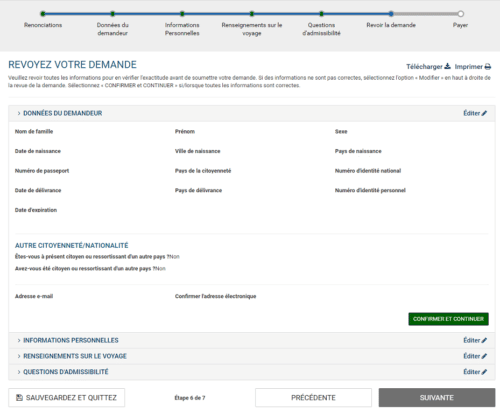 À la toute fin, on vous demandera de revérifier nom, prénom, numéro de passeport et date de naissance.